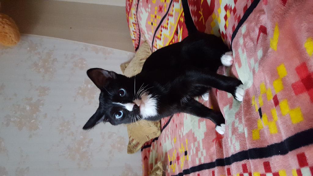 Отдадим котенка, возраст 4 мес (родился 21 августа) в хорошие руки. Игривый, любопытный, ласковый. Мурчит как трактор. Ест и консервы, и обычную пищу (курицу, рыбу). К лотку приучен.